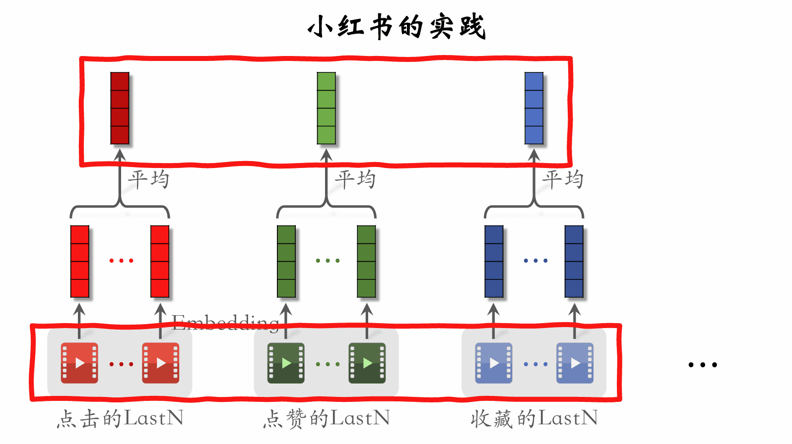 • LastN 物品 ID 做 embedding,得到 nn 个向量。